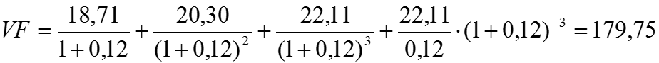 donde ke = 0,12 es la rentabilidad mínima exigida por los accionistas. Una vez más, la perpetuidad se identifica con el pronóstico para 2020.